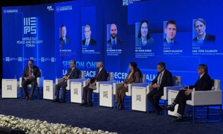 خلال مشاركتها في جلسة حوارية ضمن منتدى السلام والأمن في الشرق الأوسط – MEPS 2025 في الجامعة الأمريكية بدهوك، حول سوريا وكيفية تأمين الاستقرار فيها، أكدت الرئيسة المشتركة لدائرة العلاقات الخارجية في الإدارة الذاتية لإقليم شمال وشرق سوريا، إلهام أحمد، أن جذور الأزمة السورية مرتبطة بذهنية “مبنية على السلطة والسلاح”.
