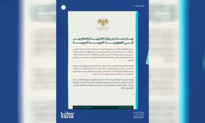 أدانت وزارة الخارجية والمغتربين في الحكومة الانتقالية، الاعتداء الذي نفّذته القوات الإسرائيلية على بلدة بيت جن في ريف دمشق.