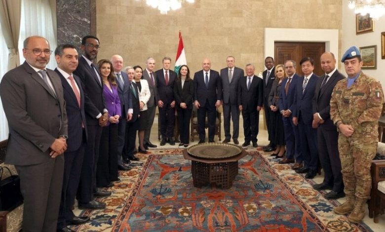 ودعا عون، فق تصريحات نقلتها الرئاسة، الوفد إلى “دعم الجيش اللبناني في استكمال عمله”، مشيراً إلى العمل مع قوة الأمم المتحدة الموقتة في جنوب لبنان (اليونيفيل) “على جميع المستويات والتنسيق مع الميكانيزم” في إشارة إلى لجنة مراقبة وقف إطلاق النار.
