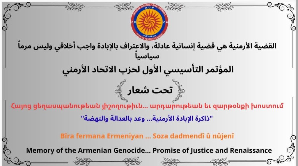 عقد في مدينة الحسكة، الخميس 18 كانون الأول 2025، المؤتمر التأسيسي الأول لحزب “الاتحاد الأرمني”، بحضور 500 مندوب من الحزب ونحو 150 ضيفاً يمثلون الإدارة الذاتية الديمقراطية شمال شرق سوريا والأحزاب السياسية والمكونات العشائرية والسورية المختلفة.